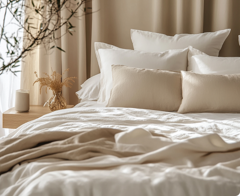 Good bedding is an investment - not just in your home, but in yourself and the planet. That's why we only use fabrics certified by GOTS and OEKO-TEX the highest organic standards ensuring safety from harmful chemicals and responsible production. Sustainability is in every thread and every step of our process.