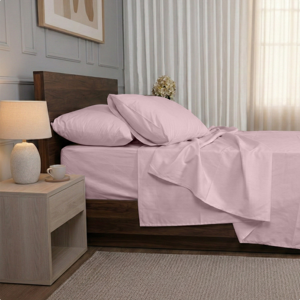 Queen Soft Blush Percale Sheet Set